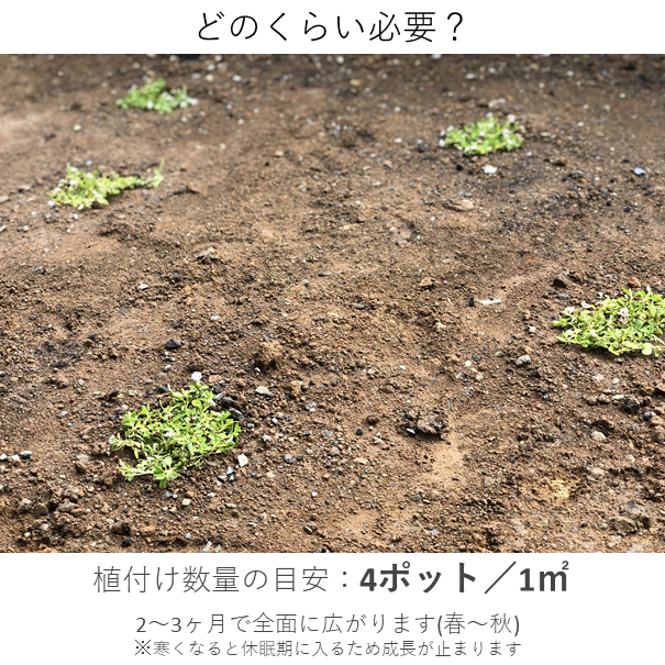 病害虫に強く、雑草抑制効果も高いため、広い庭や法面の緑化、駐車場周りにも適しています。